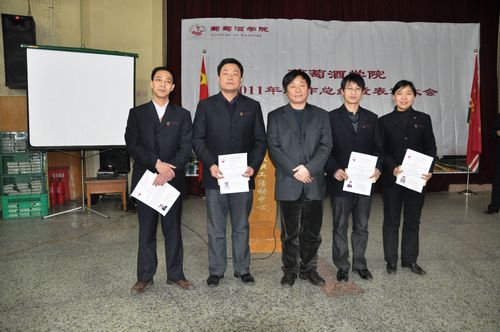 徐养福副书记为“2010?2011学年“优良学风示范班” 葡萄与葡萄酒工程093班和“先进班集体”” 葡萄与葡萄酒工程092班颁发了奖牌及“院长基金”奖励金。