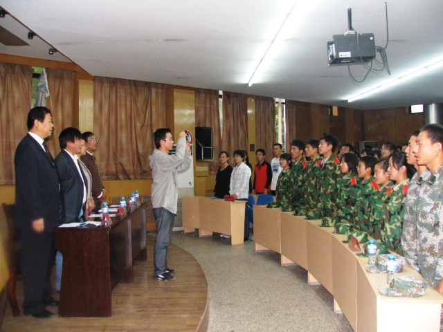 全体教职工、120余名2009级研究生、本科生以及军训教官参加了典礼。