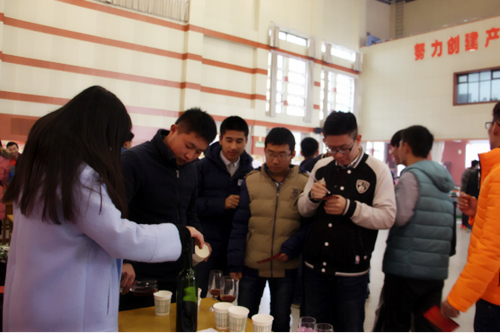 将学生科研创新成果制出的糖果及葡萄酒,邀请参展的观众进行了品尝,吸引了众多对葡萄酒感兴趣的同学。