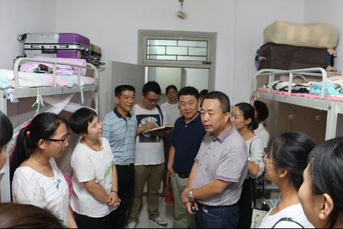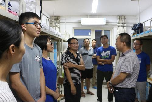 2016级新生宿舍,对新到来的同学进行了关心。2016级辅导员李雅男和2015级辅导员赵星宇陪同走访了新生宿舍。
