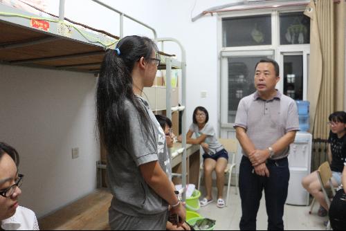 晚七点半,胡书记一行首先到达西区17号楼男生宿舍进行走访。他们仔细询问了新生对于大学的感受,学生有哪些特长,是否喜欢运动,宿舍内的气氛十分融洽,引来了大家的阵阵欢笑。新生们也都向领导老师们介绍了自己的家乡,并分享自己开学报到的见闻趣事。胡书记一行对新生表现出了极大的关心,对他们的饮食、住宿等问题都进行了细致的询问,并勉励他们一定要尽快适应自己的大学生活并能够认真对待学习。接着,领导们前往西区8号楼女生宿舍探望新生,同学们十分激动,都积极与胡书记交流自己的心得以及对大学的感受。胡书记嘱咐女生们要处理好宿舍成员和同学之间的关系,尽快转变角色,争取把宿舍塑造成一个温馨和谐的小家庭。最后,胡书记对新生们送上了深深的祝福,希望他们顺利地度过大学四年的生涯并有所收获。