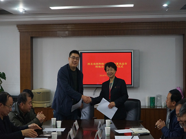 为进一步加快我校与宁夏吴忠市农业科技与产业合作进程,落实《吴忠市人民政府 西北农林科技大学现代农业科技与产业合作框架协议》。2016年11月7日上午,在国际交流中心317会议室举行西北农林科技大学与宁夏吴忠市校地合作协议签约仪式。