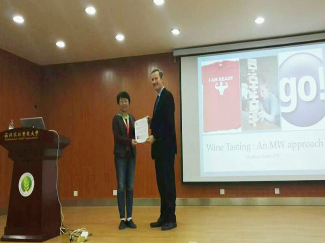 师生带来了题为Wine Tasting: An MW Approach的报告。院长王华教授为其颁发客座教授聘书,副院长刘树文教授主持报告。