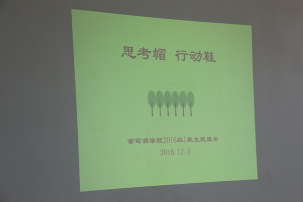 为总结新生入学至今的学习和成长,帮助学生梳理大学的目标和方向,12月5日下午,葡酒1601班召开了以“思考帽 行动鞋”为主题班会。班会由班主任邓亚丽老师主持。