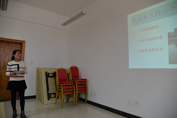 根据会议要求,每位同学结合自己学业生涯、职业生涯的规划,在会前提交了反应自己大学生活阶段性总结、反思和展望的ppt。会上,同学们逐一登台演讲,侃侃而谈。“我是谁”、“我的大学目标是什么”、“哪些素质是实现我的目标所必须的”、“现在的我能为目标的实现做什么”。会议气氛热烈,无论是充分准备者的思路清晰娓娓道来,还是初登台者的手足无措紧张慌乱,同学们都勇敢的走到前台表达自己的思考,展示个人的风采,他们的努力和进步让人欢喜,他们的迷惑和懈怠发人深思。同学们在演讲中反应的问题,也为下一步班级工作的开展指明了发力点和努力的方向。