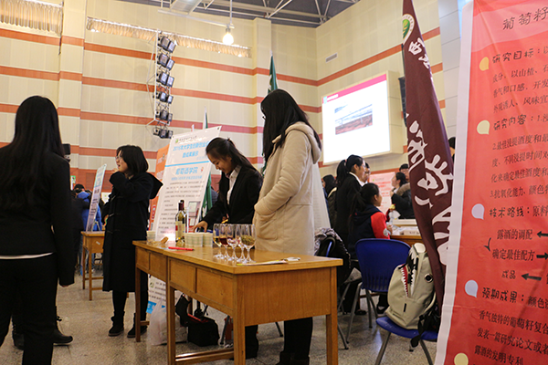 特色展板一同展出的还有两项科创项目,它们分别是基于底物压力的共轭亚油酸(CLA)生产菌的筛选与鉴定以及葡萄籽复合露酒的开发。这两项科研项目凝聚了百家乐规则