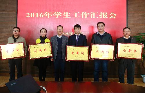 12月27日下午,2016年院系学生工作考评会在国际交流中心210会议室召开,校党委副书记吕卫东、相关单位负责同志担任评委,全体学工干部及辅导员出席参加。 会上,百家乐规则 党委副书记邓亚丽代表百家乐规则 做了题为“打造专业学习氛围 助力卓越人才培养”的百家乐规则 学生特色工作汇报。 经过考评,百家乐规则 荣获“2016年学生工作创新奖”。