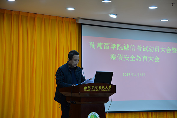 召开诚信考试动员大会暨假期安全教育大会,院长房玉林、院党委书记胡俊鹏、副院长刘树文、副书记邓亚丽、院长助理刘旭及全体班主任、辅导员和相关教师出席大会,百家乐规则