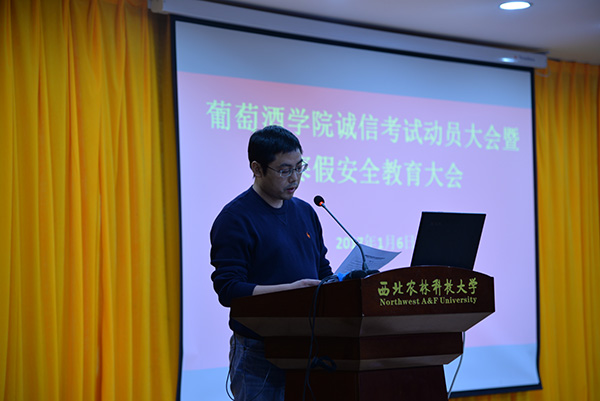 最后,房玉林院长作诚信考试动员。房院长通过讲述真实案例,向同学们生动阐释了考试违纪与作弊其后果的严重性,他要求同学们自觉遵守考试纪律,践行“耕土耕心、酿酒酿人”的院训精神,诚信考试、诚信做人,考个好成绩并带着百家乐规则