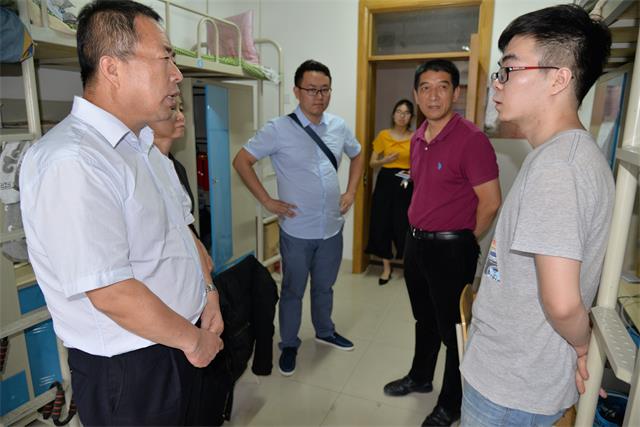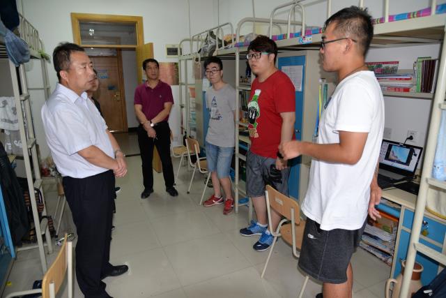 毕业生们友好地握手,并进行了亲切的交谈。询问了同学们毕业后工作地点在哪儿,工作如何,是否继续读研深造,去到哪所学校……并对毕业生今后的工作学习等方面提出了良好建议。针对学生宿舍物品较多,特别是电脑等贵重物品多、宿舍人员出入频繁等情况,老师们嘱咐毕业生要提高安全意识,保管好个人贵重物品,注意人身及财产安全,做到安全文明离校。在问到在离开之际,对母校的感想时,13级学生宋巧智感慨道:四年时间太短,还没好好看看母校的每一寸土地便要离去,十分不舍,同时也感谢母校的老师,领导对自己的栽培,关心和厚爱。