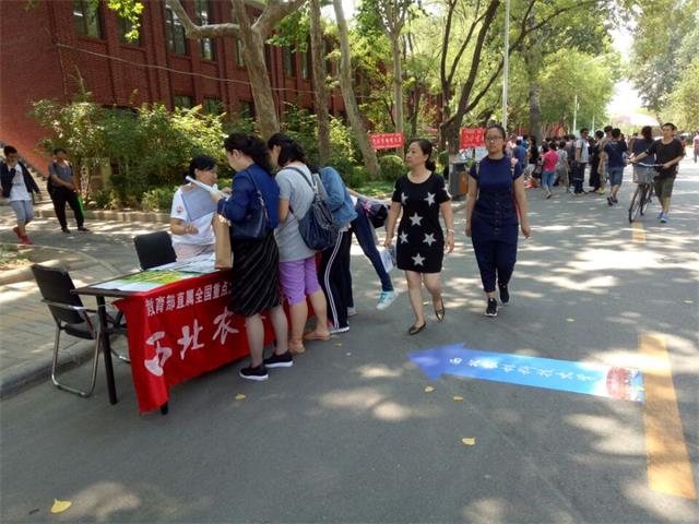 派出张艳芳老师前去天津进行招生宣传,参加高考招生咨询会,另有在天津的杨凌志愿者1人共同参与招生宣传咨询。24日上午在静海一中张贴海报,在科研2号楼的405室接待了有填报意向的考生及家长;26日参加了天津大学的高考招生咨询会,计划12点结束的咨询会一直进行到1点,共发放招生简章400册,耐心解答了家长及考生的问题,被问到最多的是学校的王牌专业、特色专业、学生的就业去向、保研比例及去向、学校的交通、生活条件、周边环境等。作为西农人,我们坦诚为考生介绍学校的点点滴滴,欢迎广大学子能选择西农,也希望广大的家长能放手让孩子去更广阔的天地中锻炼,去成长,这样才无悔于青春。