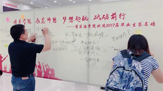、感念师恩、梦想起航、砥砺前行”为主题的欢送毕业生签名墙,同学们的感恩之情和老师们的美好祝愿,都化作了签名墙上动情的话语。“甲贵爸爸”、“和财爷爷”、“继红妈咪”这样的昵称,体现了学生对老师的认可和爱戴,“感谢全院老师的栽培,么么哒!”、“牢记教诲,老师保重!”、“出航四海,百家乐规则