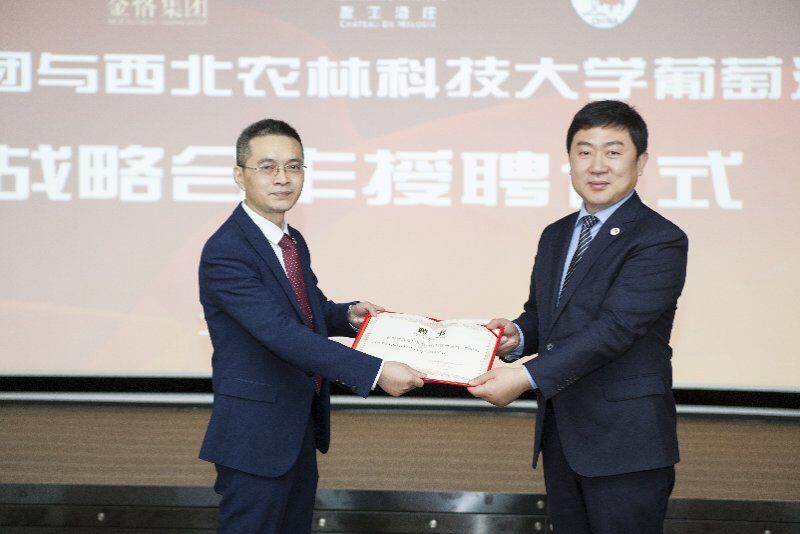 战略合作签约暨揭牌仪式”。围绕酿酒葡萄和葡萄酒产业发展,双方在人才建设平台搭建、技术研发项目合作、葡萄酒文化传播推广、学生创新创业活动推动、品牌营销打造、资源整合共享等方面开展全面、深度的合作。