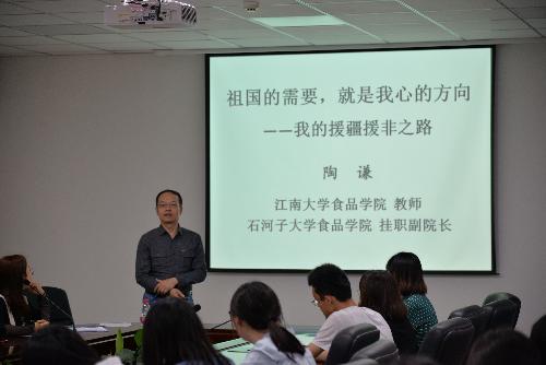 挂职副院长陶谦老师为同学们带来了“我的援疆援非之路”主题报告会。报告会由百家乐规则
