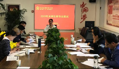 党委副书记邓亚丽,张予林、秦义、孟江飞、安鲁教师,辅导员薛雪以及20名转专业同学参加了面试。